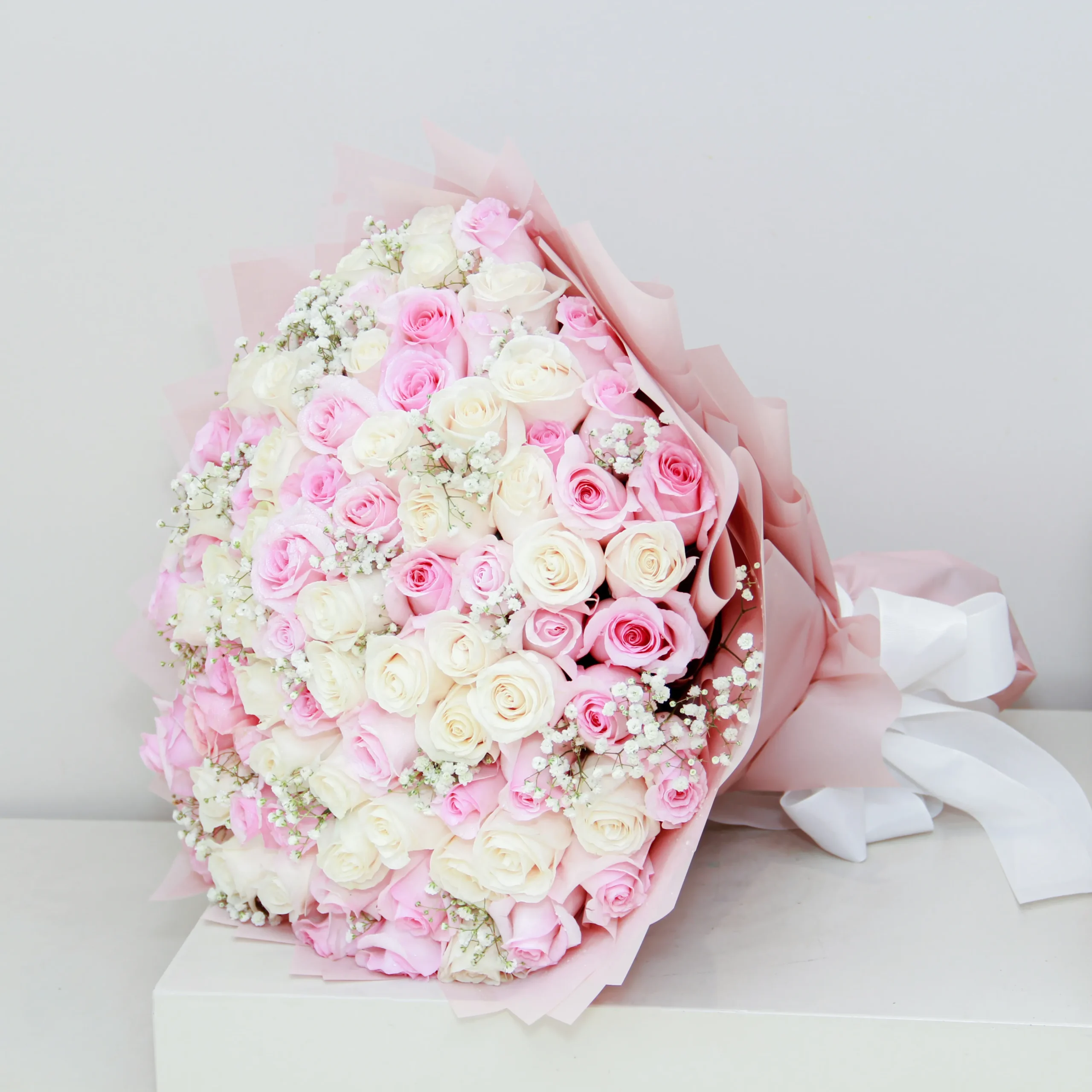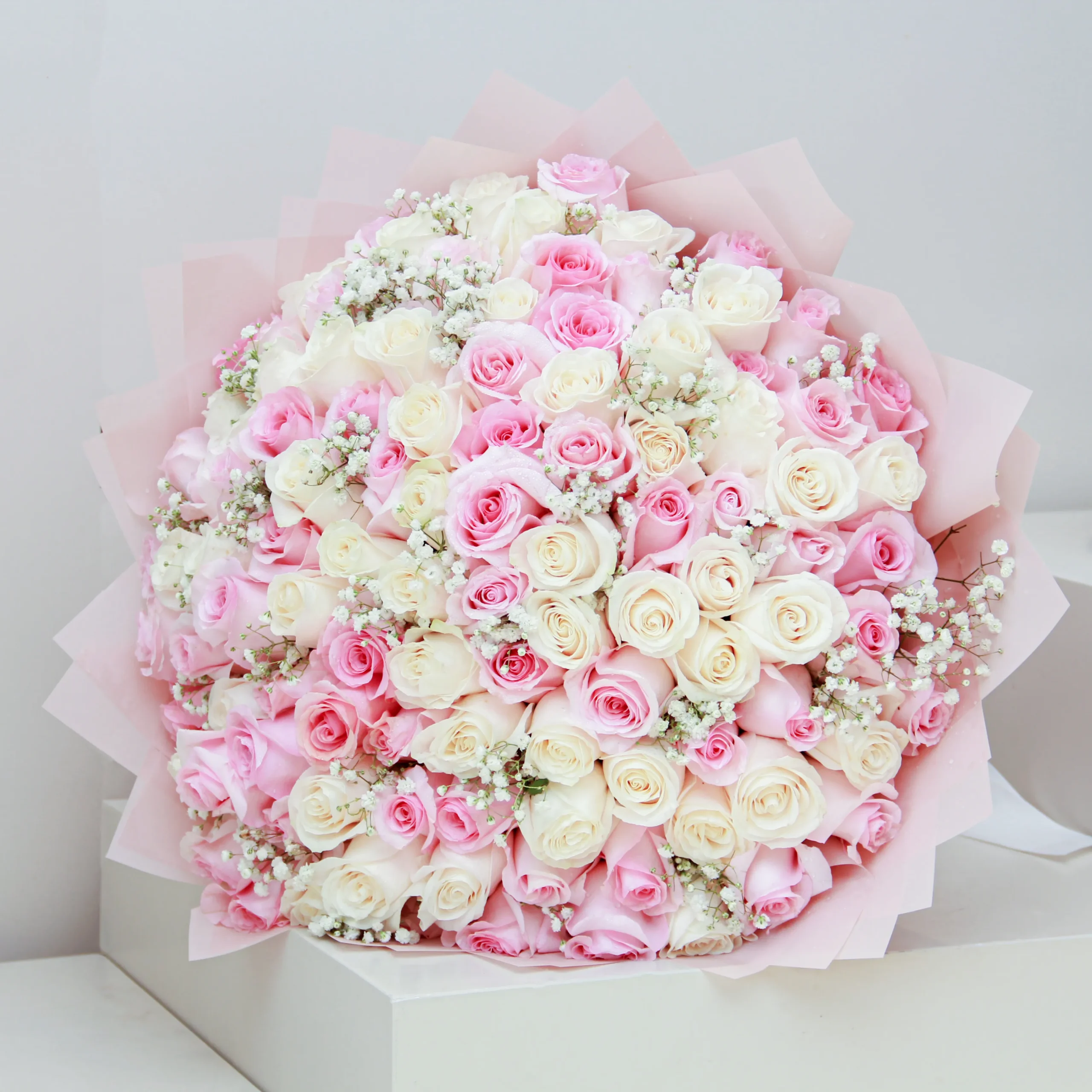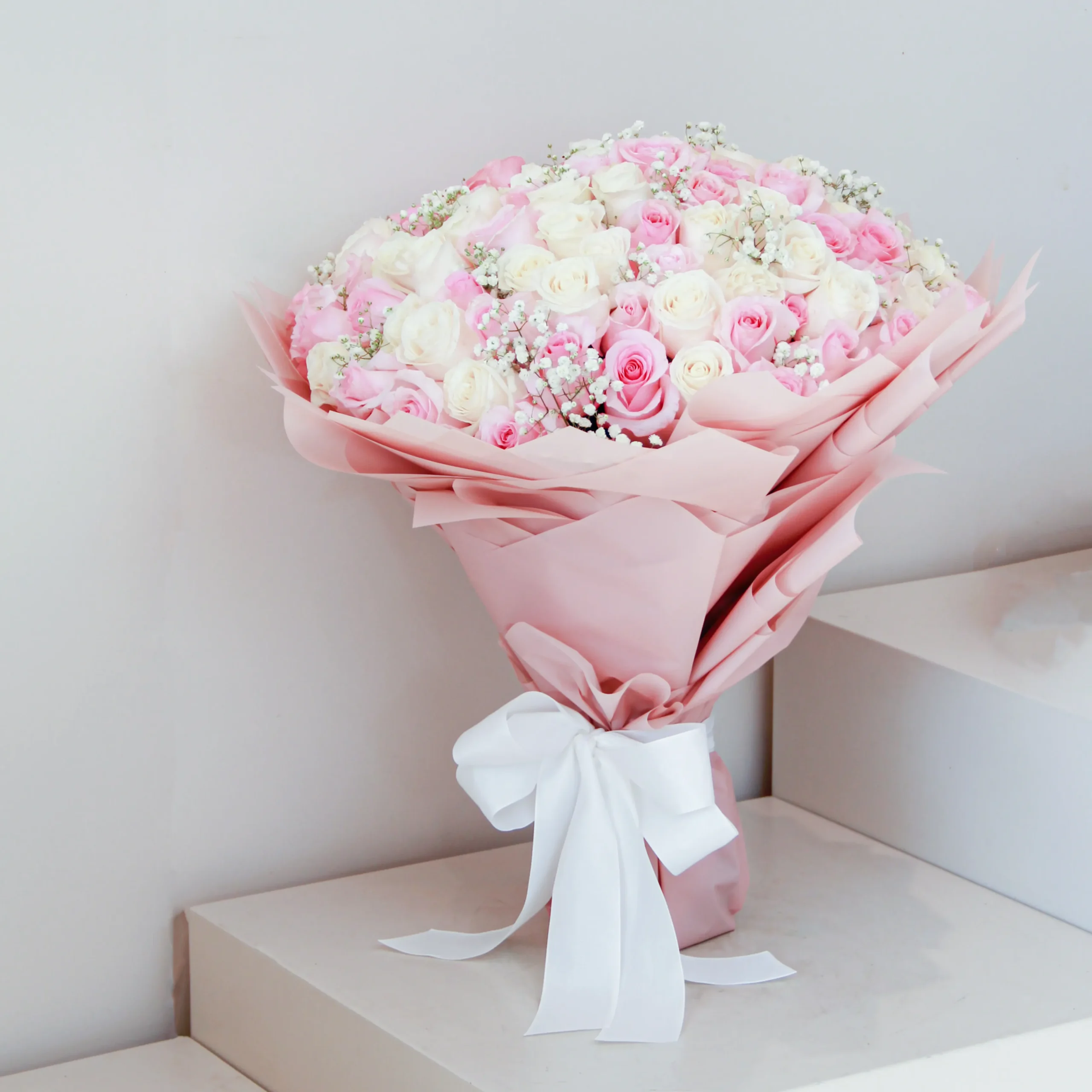 A stunning pink and white bouquet wrapped elegantly in soft pink paper — the perfect blend of grace and charm. Filled with fresh blooms that radiate love, beauty, and joy, this big bouquet makes an ideal gift for birthdays, celebrations, or simply to brighten someone’s day.
